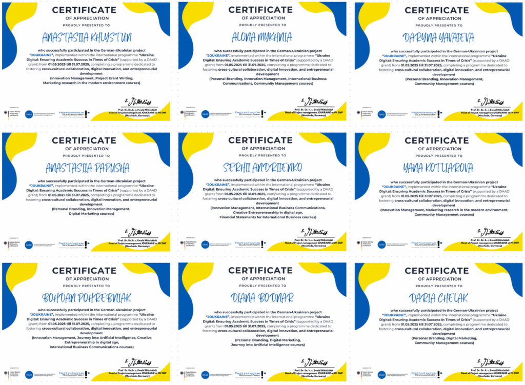 Успішне завершення студентами економічного факультету стипендіальної програми за підтримки DAAD “UKRAINE DIGITAL: ENSURING ACADEMIC SUCCESS IN TIMES» (01.05.2025 – 31.07.2025)